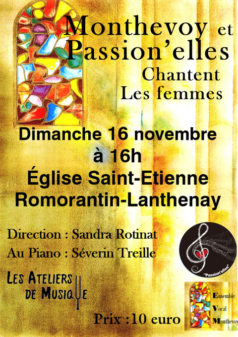 11 fév. 2024: Concert caritatif au profit du "mécénat chirurgie cardiaque". La chorale Monthevoy reçoit le choeur féminin de Marmoutier à Montrichard (église de Nanteuil).